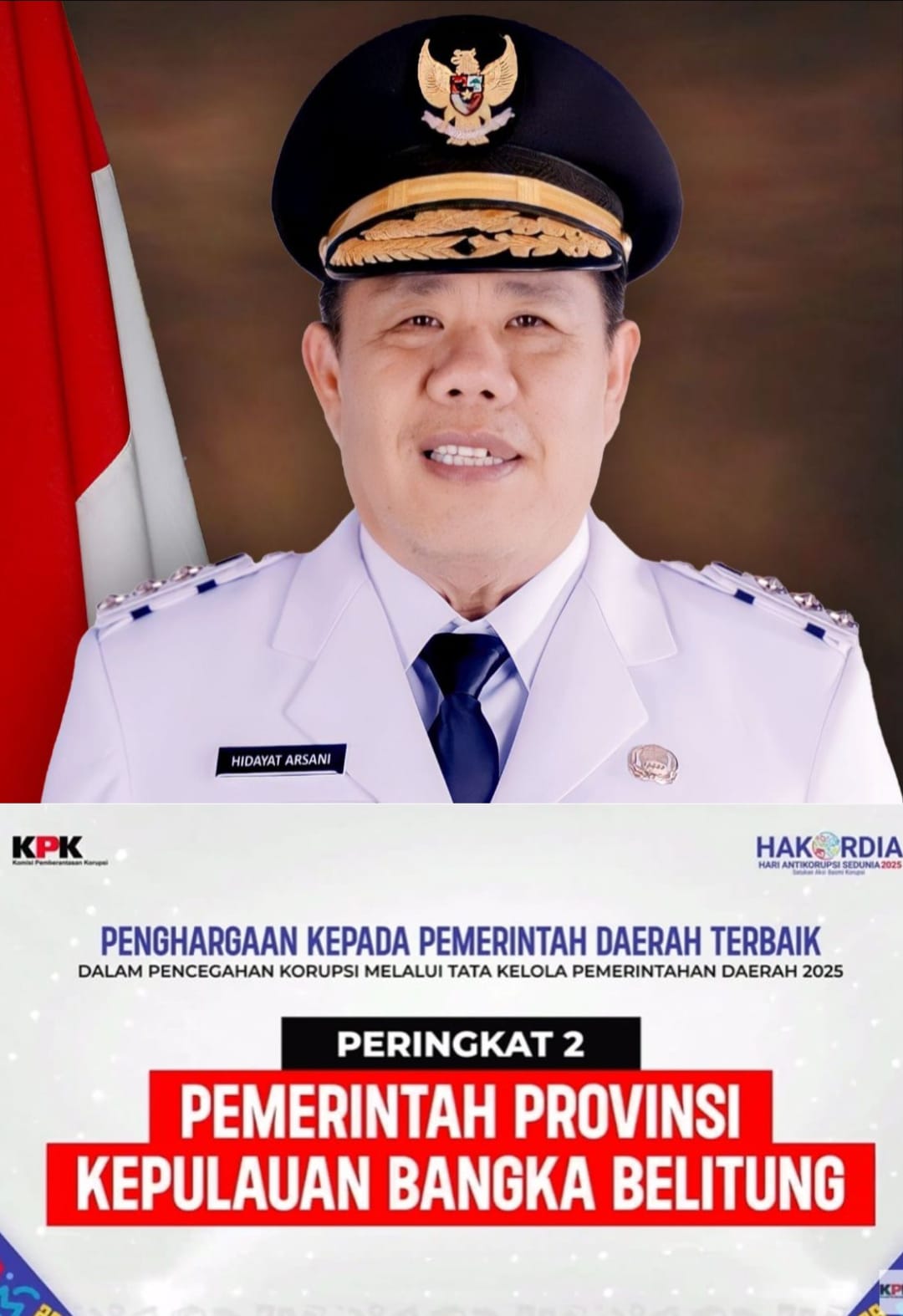 Di Bawah Kepemimpinan Hidayat Arsani, Kerja Nyata Babel Terima Penghargaan Peringkat 2 Nasional Pencegahan Korupsi 2025